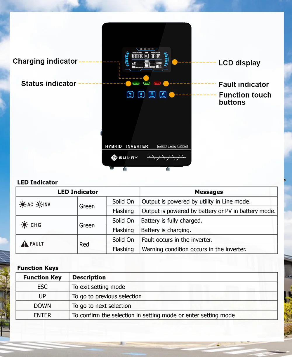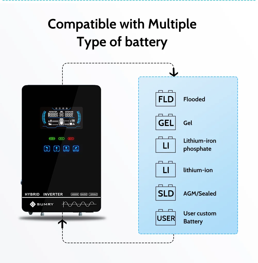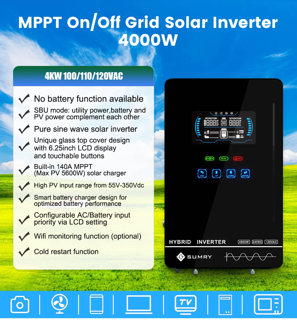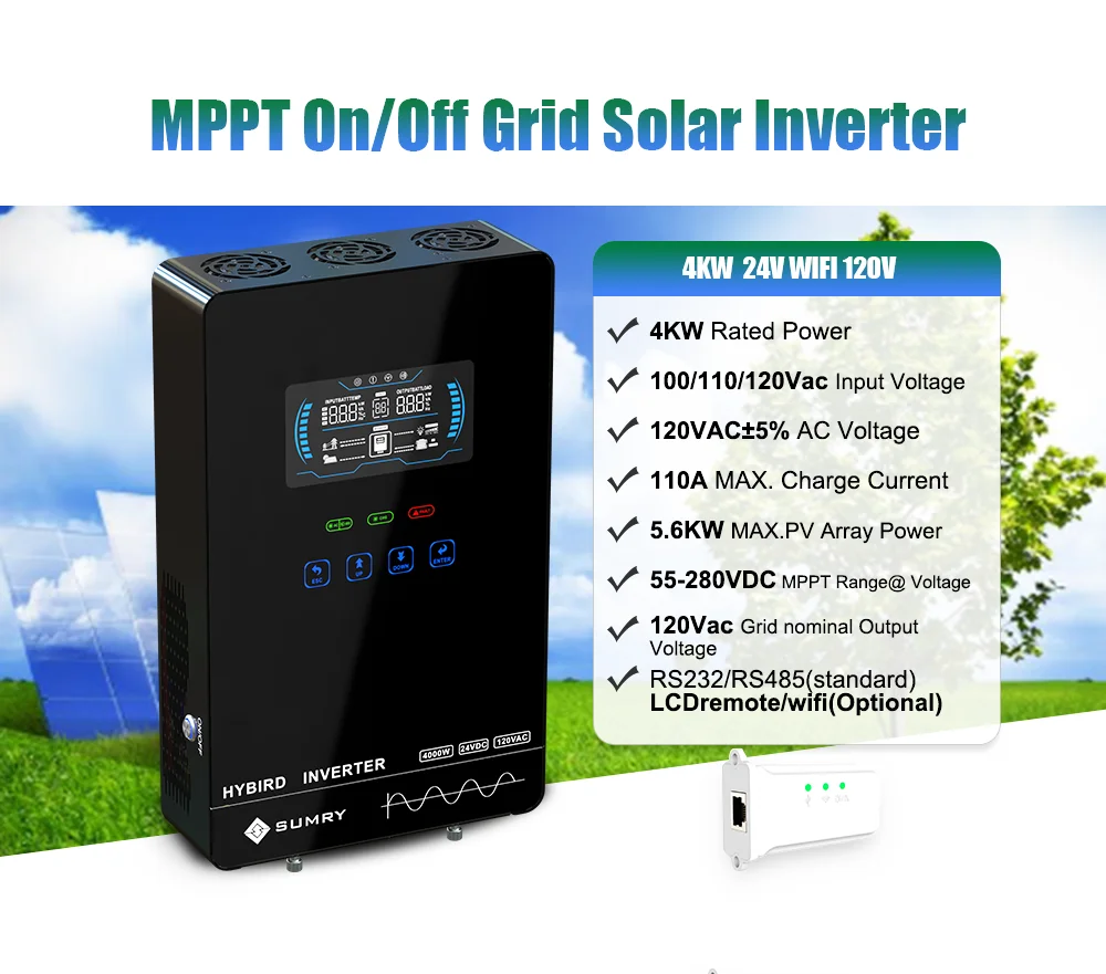 SUMRY Power Solar Inverter Off Grid 4KW 24v 110/120v Pure Sine Wave MPPT Solar Charger Power Home Inversor LCD