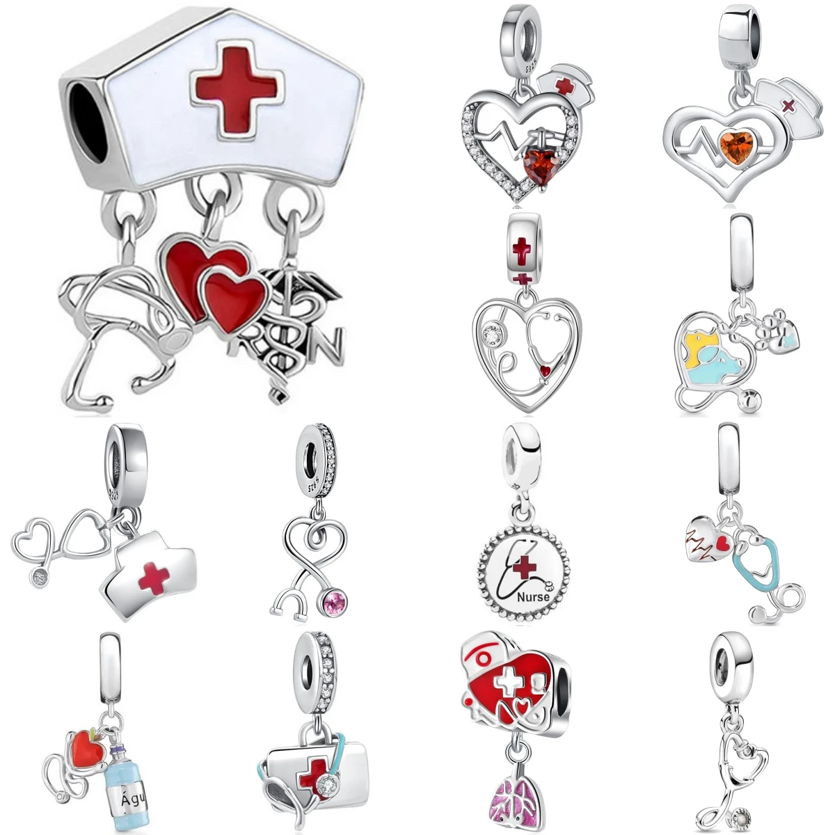 Trinkets 925 Sterling Silver Doctor Nurse Stethoscope Medicine Box Charm Fit Original Brand Bracelet Necklace 925 Jewelry Gift
