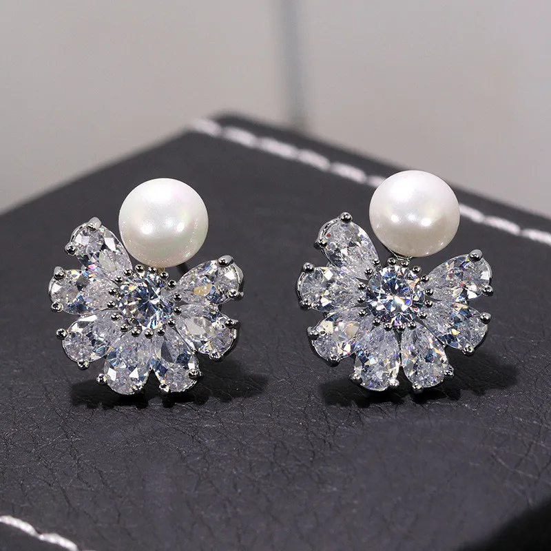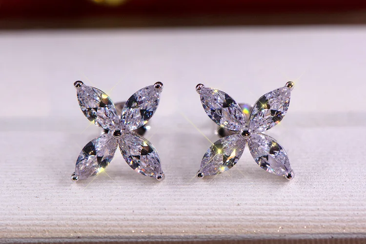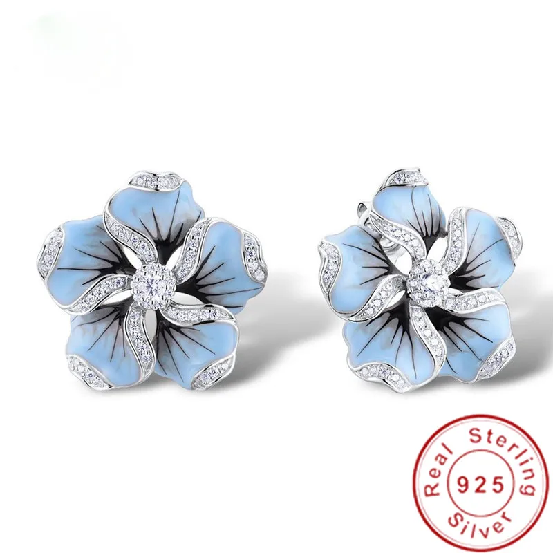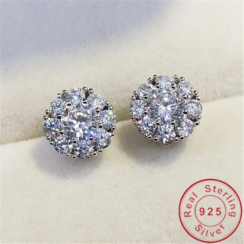Vecalon Flower earring Pave AAAAA Cz stone Real 925 Sterling silver Statement Party wedding Stud Earrings for women Jewelry