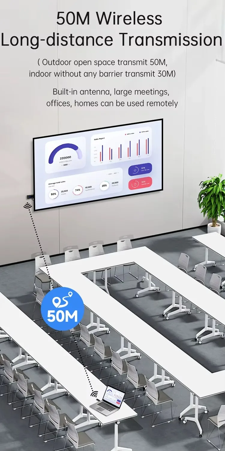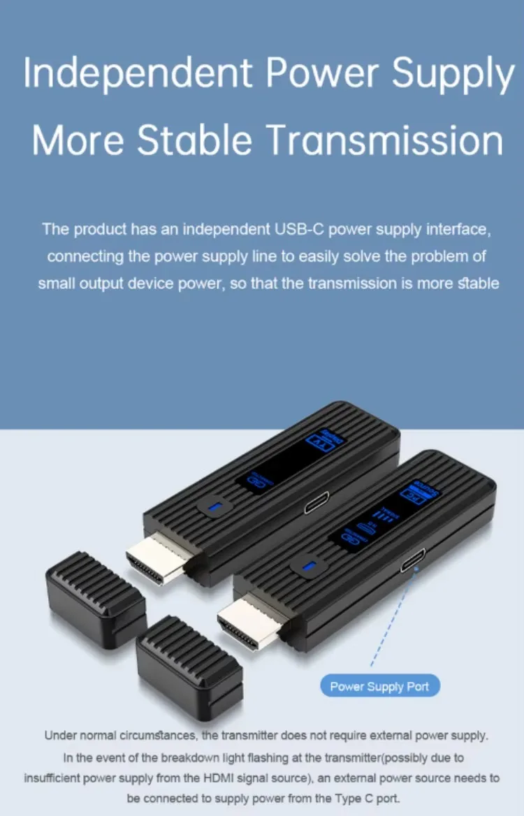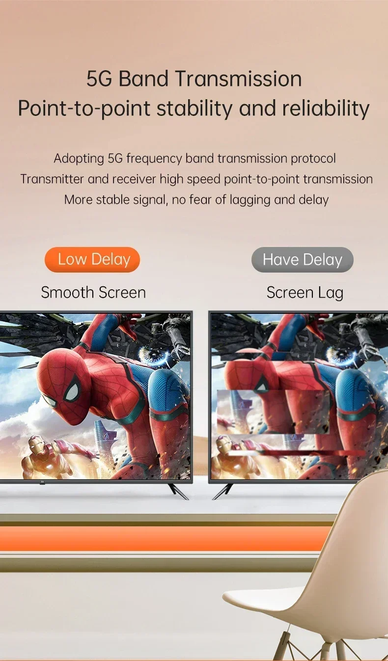 2. HDMI-Compatible video and audio transmission via built-in wireless transmission protocol,no need wifi or internet.