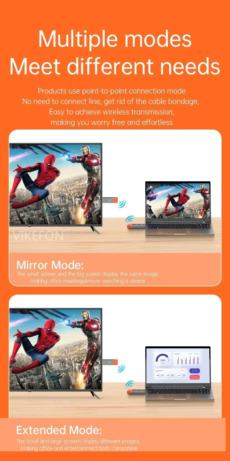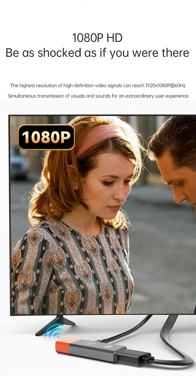 【Highly Compatible】HDMI-Compatible interface is highly compatible and can be convertible to other interfaces. VIKEFON The device with HDMI-Compatible interface can be used directly, and the device without HDMI-Compatible interface can be used with HDMI-Compatible converter. Wirelessly stream true 1080p high definition 3D video & digital audio to your TV or projector. Watch movies & TV shows from your laptop, PC, MacBook, iPad Pro, A/V receiver, gaming console, PS4/5, Xbox, Nintendo Switch, cable/satellite